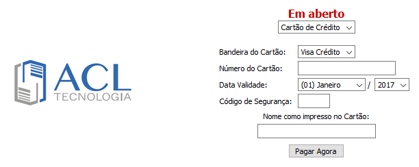 Caso sua forma de pagamento seja Cartão de Crédito, será exibida uma nova página solicitando os dados do cartão. Insira os dados solicitados e clique em Pagar Agora.