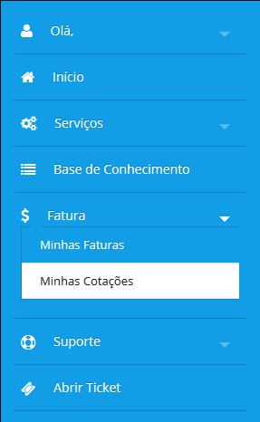 No menu lateral, clique na seta ao lado de Faturas. Em seguida clique na opção Minhas Faturas.