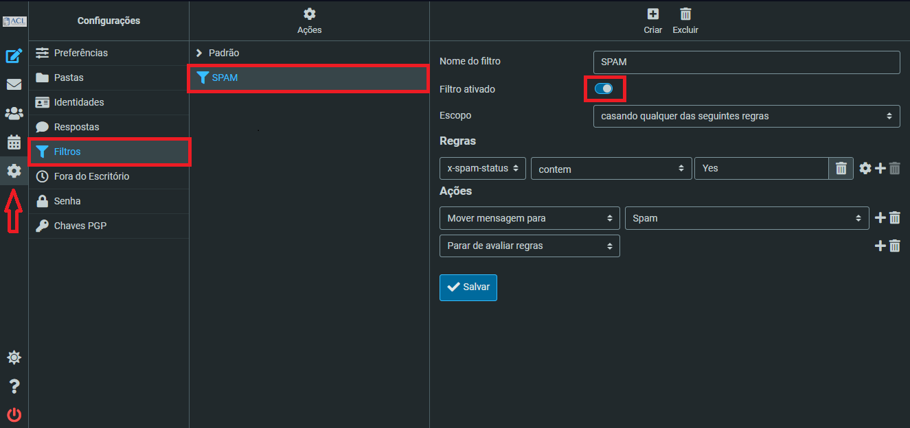 Como ativar e desativar o filtro AntiSPAM do WebMail