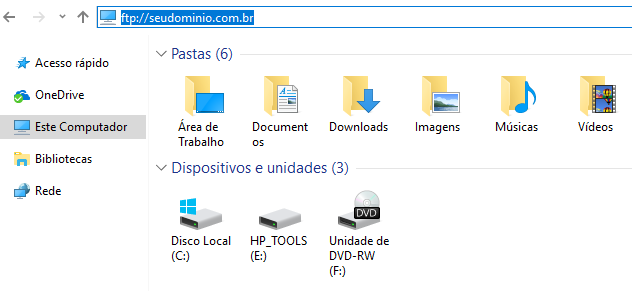 Para acessar a Área FTP de seu site, através do Windows Explorer.